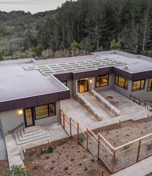 New construction of a hillside home designed to replace a residence lost in the Tubbs Fire, blending modern elegance, resilience, and a deep connection to the surrounding natural beauty.